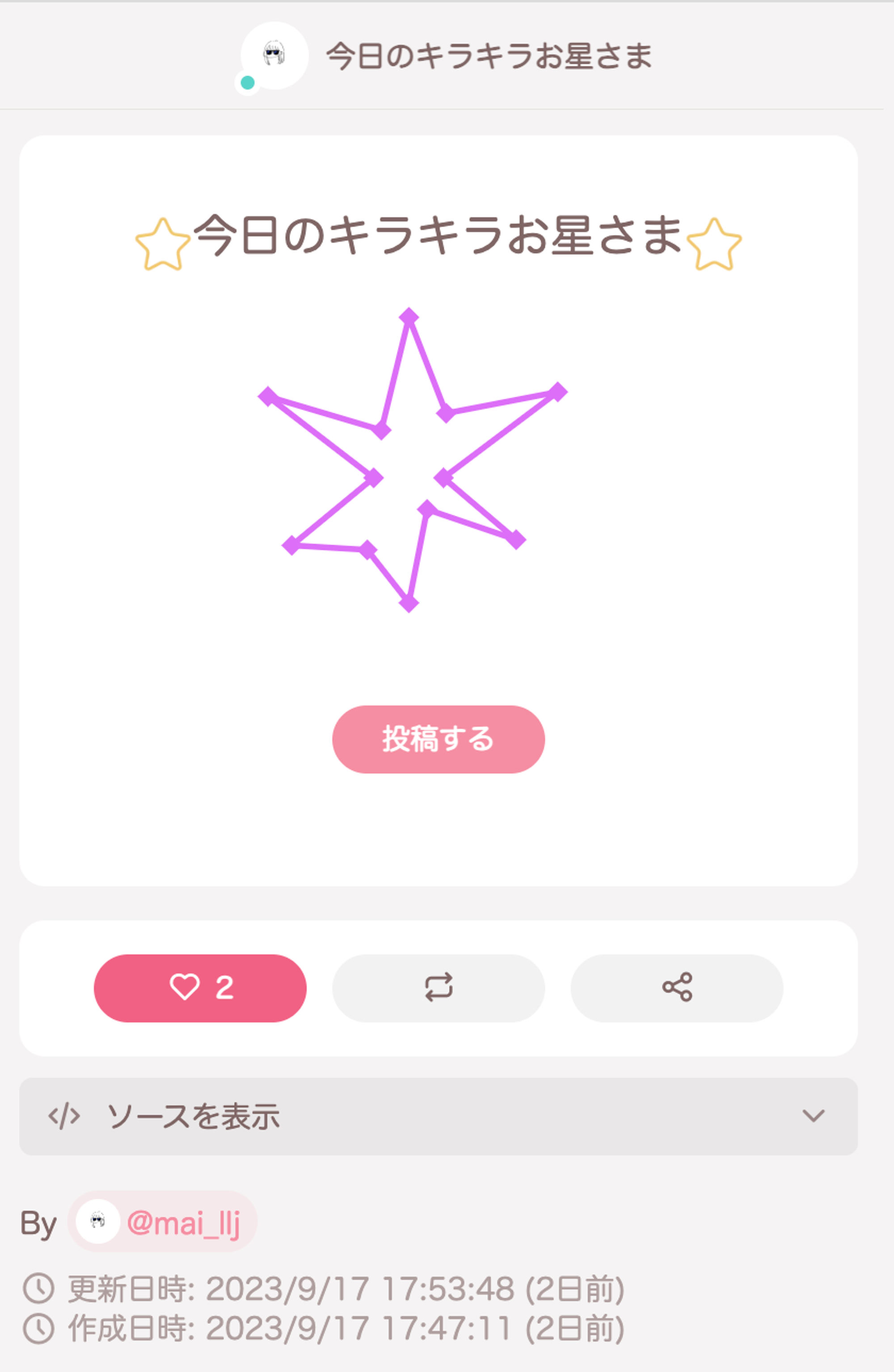 本日のキラキラお星さまを描画できたり、おみくじをひけたり、いちから自分でゲームを作ることもできるぞ!!